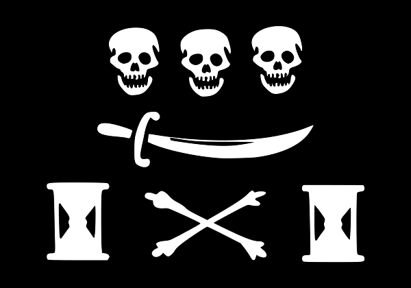 Captain Jean Thomas Dulaien Dulaien used the tactic of hiding his 60-ton, 14-gun vessel among the tall trees on the shores of West Caicos, waiting there to ambush passing ships. He quickly captured over a dozen ships, some of them French, and absorbed the best of them into his flotilla, keeping others for careening the Sans Pitie. He appointed an associate named Garnier to command his consort ship, renamed Sans Quartier (No Quarter). Within a year they decided to divide their plunder and return to France to seek a pardon. After dropping off most of his crew on Tortuga and preparing to leave for Nantes, Dulaien is said to have surprised the crew of the Sans Quartier as he sailed away with most of their treasure, calling out "Goodbye! Farewell, scoundrels! I go to France and I am no longer a pirate." French officials offered Dulaien a pardon on the condition that he surrender any stolen goods. Before accepting the offer, he and his crew sold their loot and hid the proceeds, leaving some with friends and relatives. The authorities suspected that the little plunder they found on the Sans Pitie was only a small part of what Dulaien had stolen, and they persuaded local priests to threaten citizens who aided the pirates with excommunication. The threat worked, and after informants had led them to the hidden treasure, the officials arrested Dulaien and his crew. The Sans Pitie, in poor condition, was sold off to help defray the losses of the merchants whose cargoes Dulaien had plundered. After appeals to the King, the crew were released, but Dulaien was left in jail for some time longer, his ultimate fate is not known. Dulaien is best known to history for his authentic pirate Articles and black flag. His pirate flag was described by the mayor of Nantes as "Black cloth, with white designs of human figures, cutlasses, bones, and hourglasses." A woodblock purportedly made from a drawing of the flag has survived, as have other independent drawings of it. The original flag was preserved for some years, but is now lost, possibly destroyed on orders from King Louis XV. Dulaien's flag is often confused with that of Walter Kennedy, which was described in similar terms. Because the original flag is missing and the older drawings of it vary, its exact design is however unknown.